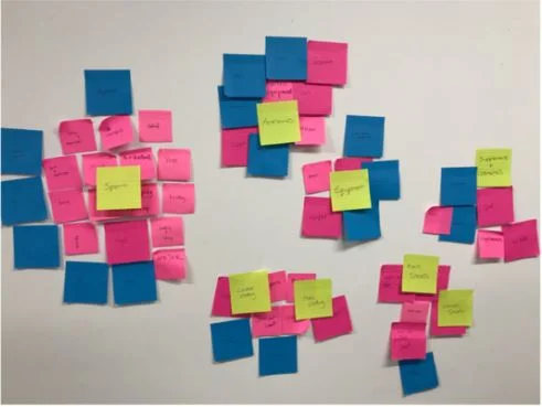 With all the categories created through this open sorting method, I placed them into trends through affinity mapping to produce the main categories of my sitemap.