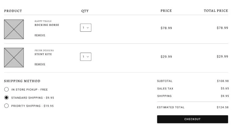 Once the checkout now button or cart icon was selected, a user would be led to the cart summary page pictured below. This was the first step in the checkout process where users could review and make changes to their cart as appropriate.